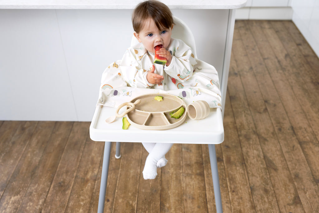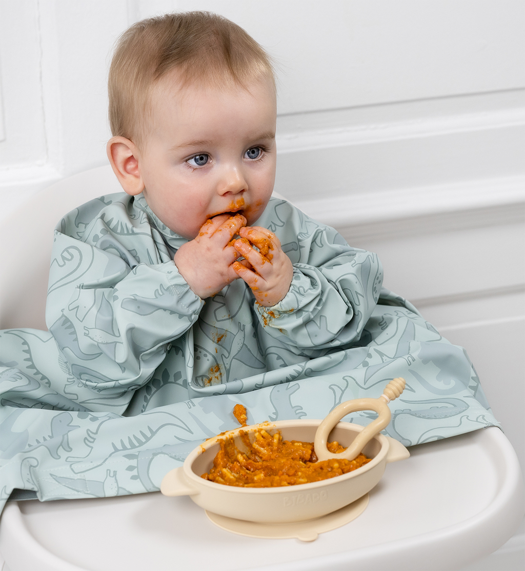 Jei jūsų namuose prasidėjo primaitinimas, greičiausiai pažįstama situacija: vaikas pavalgė, bet maistas atsidūrė visur – ant drabužių, kėdutės, grindų ir kartais net jūsų!