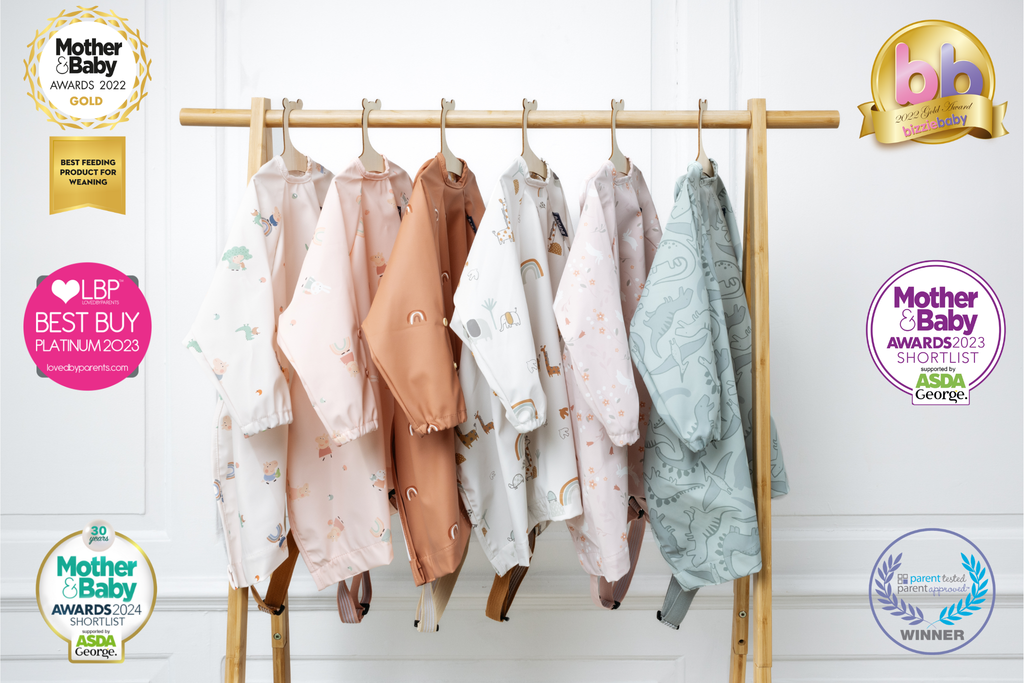 BiBADO primaitinimo marškinėliai yra daugybę tarptautinių apdovanojimų pelnę, patys populiariausi marškinėliai pasaulyje, nes sukurti būtent šiam etapui palengvinti! Jie prisitvirtina prie kėdutės stalelio ir uždengia tarpą tarp vaiko ir stalo, todėl maistas nebekrenta ant kelių ir drabužių! Šie marškinėliai pagaminti iš ypač kokybiško, minkšto, vandeniui atsparaus audinio, pasižymintys išskirtiniu dizainu, užtikrinančiu, kad Jūsų mažylis valgymo metu visada jaustųsi patogiai, o drabužėliai liktų švarūs, sausi ir be jokių dėmių!